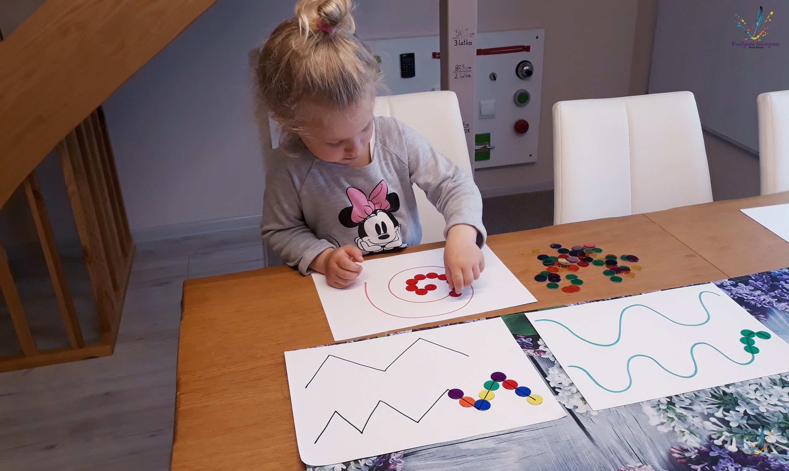 Zabawy zaprezentowane poniżej sprawdzą się jako alternatywa szlaczków. Zamieńmy więc ołówki na guziki, koraliki, plastelinę, nakrętki lub inne przedmioty, którymi dziecko będzie mogło ozdabiać kartkę według wzoru.