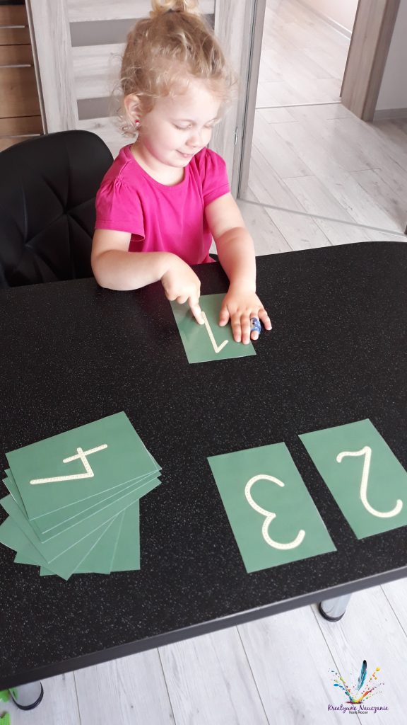 1. Wydrukuj plik (możesz pobrać go tutaj: https://mojemontessori.com/wp-content/uploads/2017/09/Szorstie-cyfry.pdf )