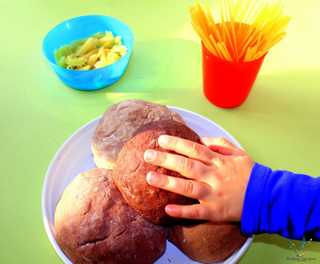 Ciastolina (mąka przenna + ciepła woda + olej) z dodatkiem kakao.