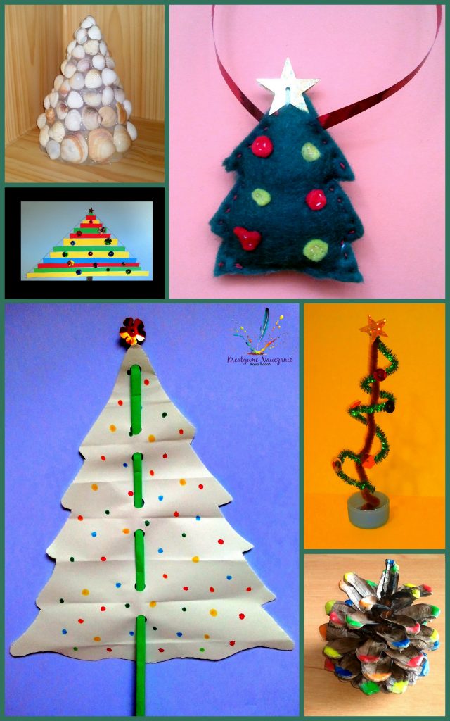 A tutaj już choinki wykonane z: muszelek, papieru, drucików kreatywnych, a także uszyte z filcu.