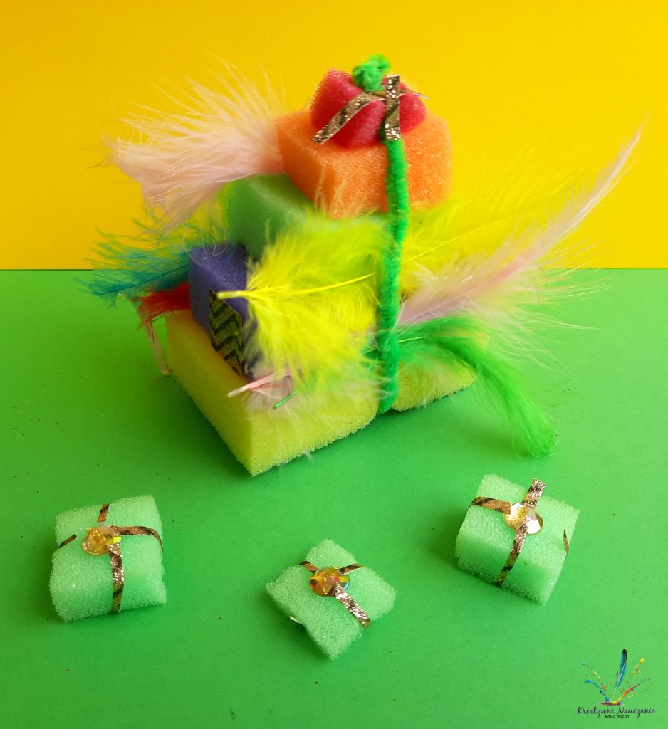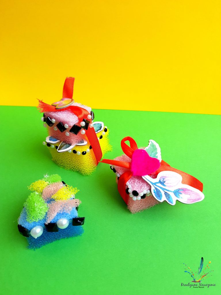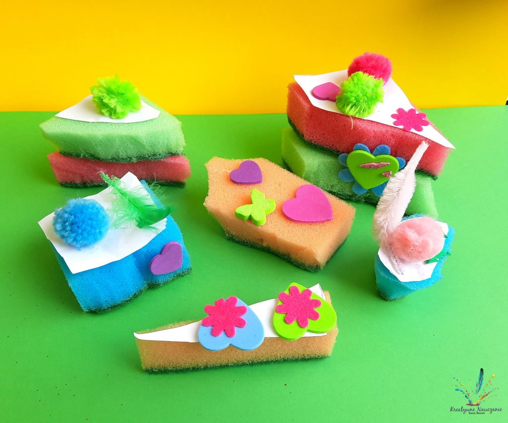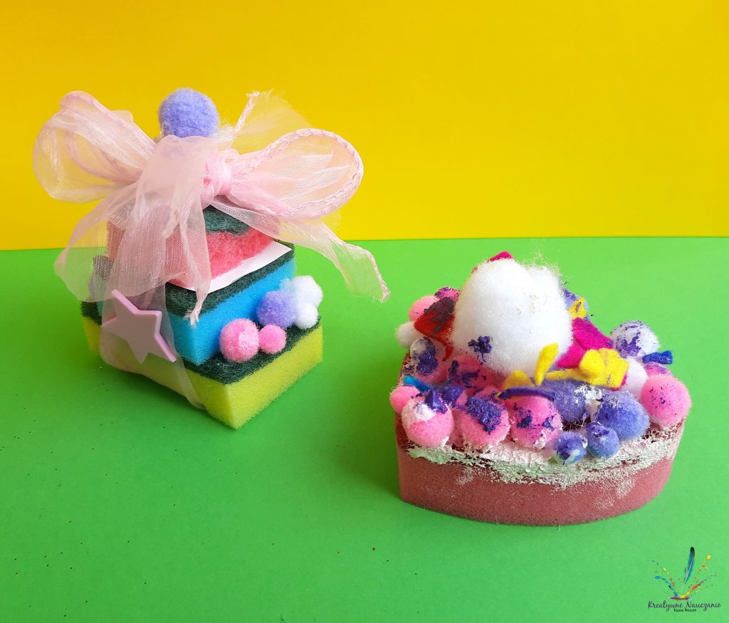 Zbliża się Dzień Babci i Dzień Dziadka. Z tej okazji moi uczniowie wykonali babeczki, ciasteczka i torciki z… gąbek kuchennych. Teraz wystarczy już tylko zapakować w celofan i prezent gotowy 😉
