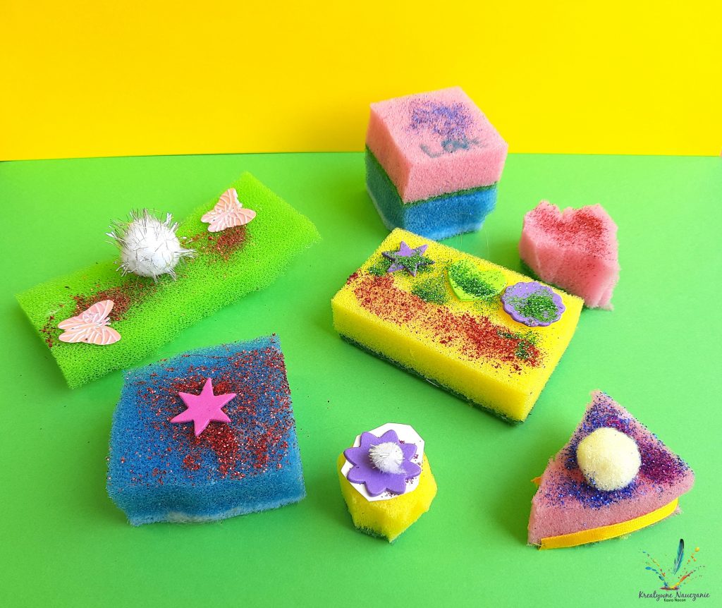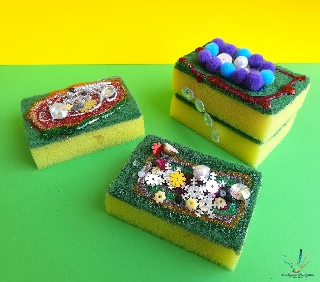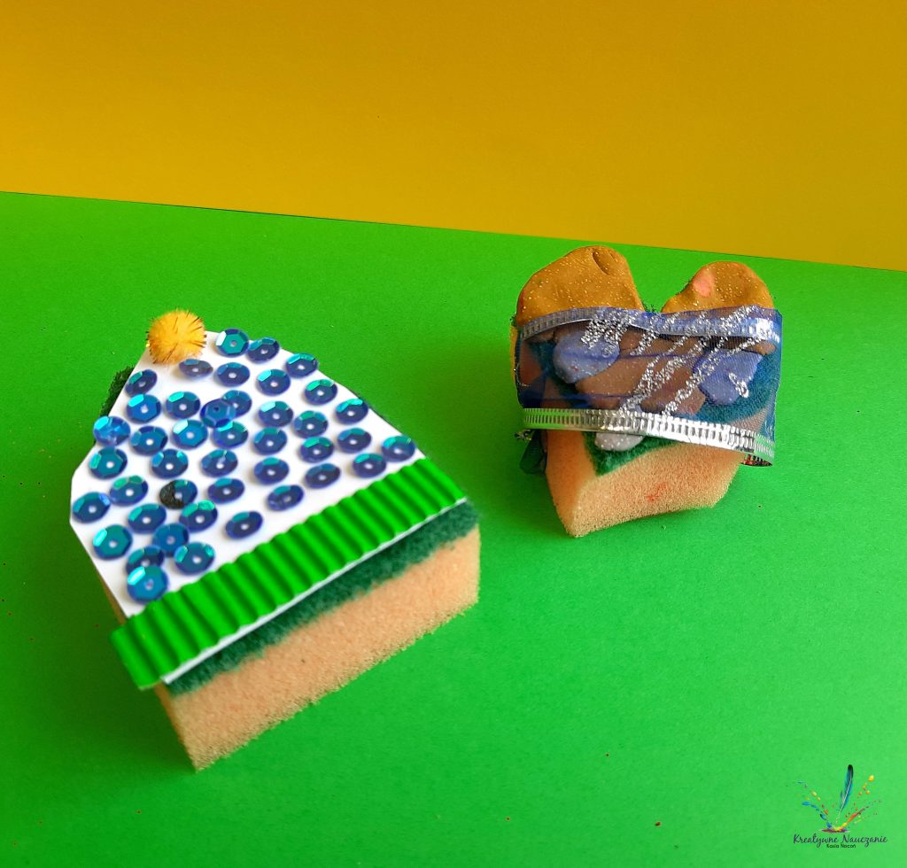Zbliża się Dzień Babci i Dzień Dziadka. Z tej okazji moi uczniowie wykonali babeczki, ciasteczka i torciki z… gąbek kuchennych. Teraz wystarczy już tylko zapakować w celofan i prezent gotowy 😉