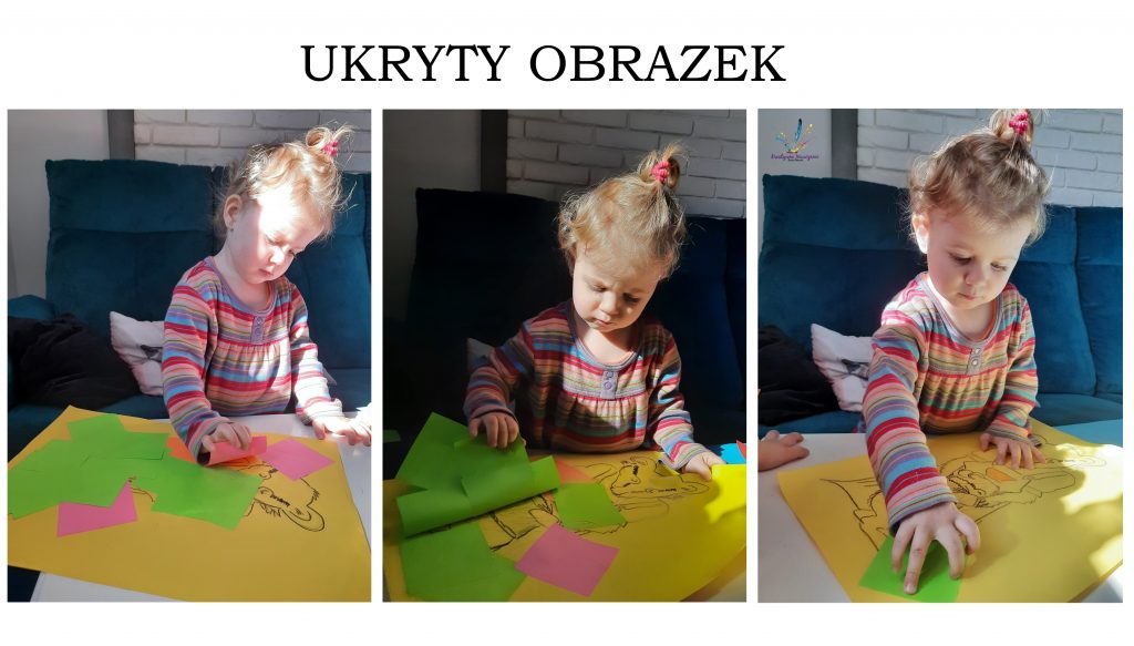 Zabawa ta spodoba się zarówno starszym, jak i młodszym dzieciom. Mojej niespełna czteroletniej i półtorarocznej Pociesze zabawa z ukrytym obrazkiem przypadła do gustu, obie miały z niej frajdę. Z tą różnicą, że starszej ruszyła wyobraźnia i udawała, że jest detektywem 😉