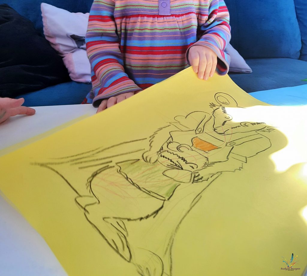 Nie każdy lubi/potrafi/chce samodzielnie rysować. Obrazek z książki możemy więc skserować, albo dać dziecku kolorowankę którą później pokoloruje.