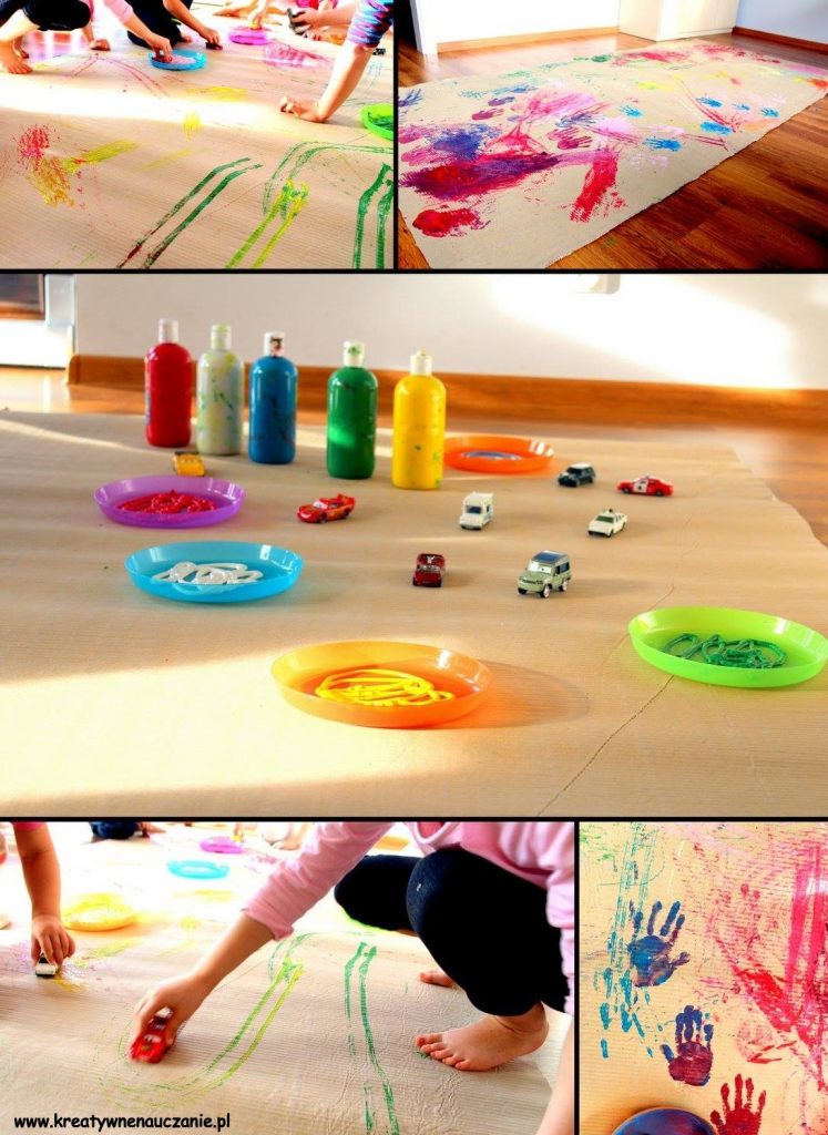 Ta zabawa nigdy nie kończy się jedynie odbijaniem kół samochodu w farbie, ale czy nie warto czasami się pobrudzić? 🙂