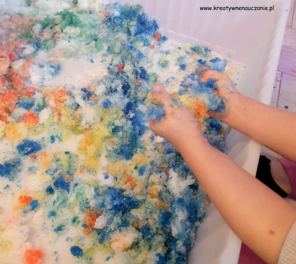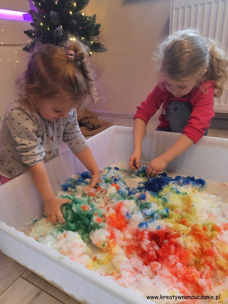 Ostatnio dzieliłam się z pomysłem na zabawę śniegiem zrobionym z mąki ziemniaczanej. Dzisiaj zaproponuję kolejną zimową zabawę sensoryczną, od której Wasze Pociechy nie będą się chciały oderwać! 🙂