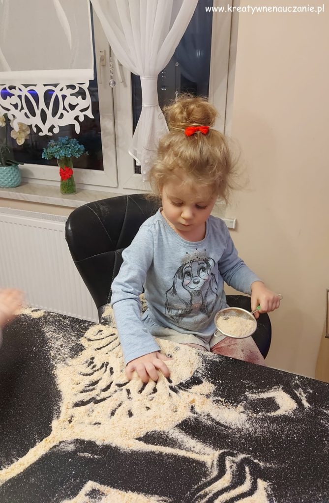 Zakopałam rodzynki w bułce tartej. Zadaniem Amelii było ich odnalezienie