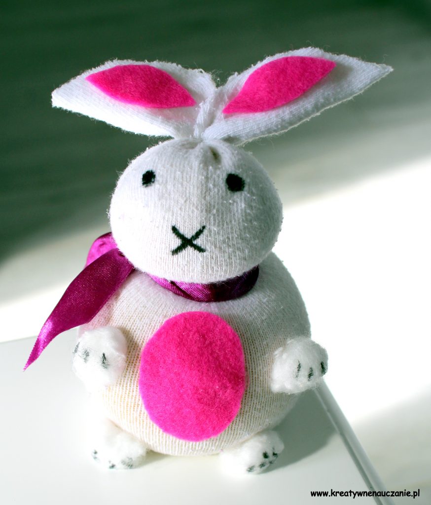 2. Formujemy kształt zajączka (głowa musi wypełnić piętę skarpety).