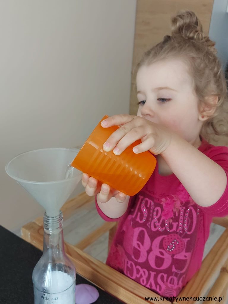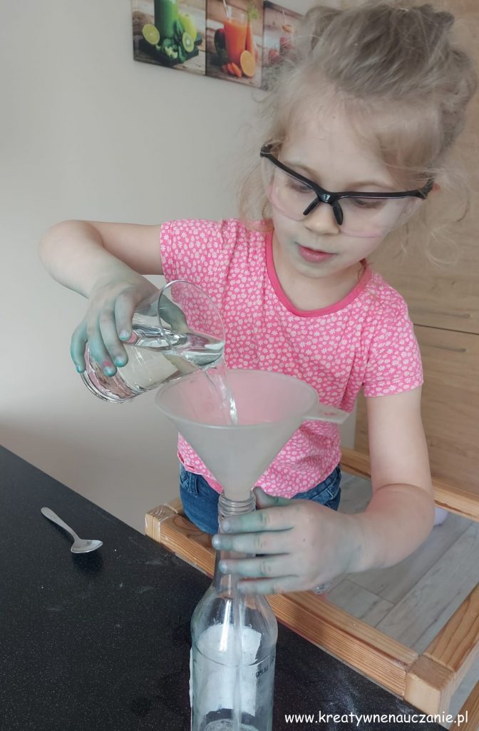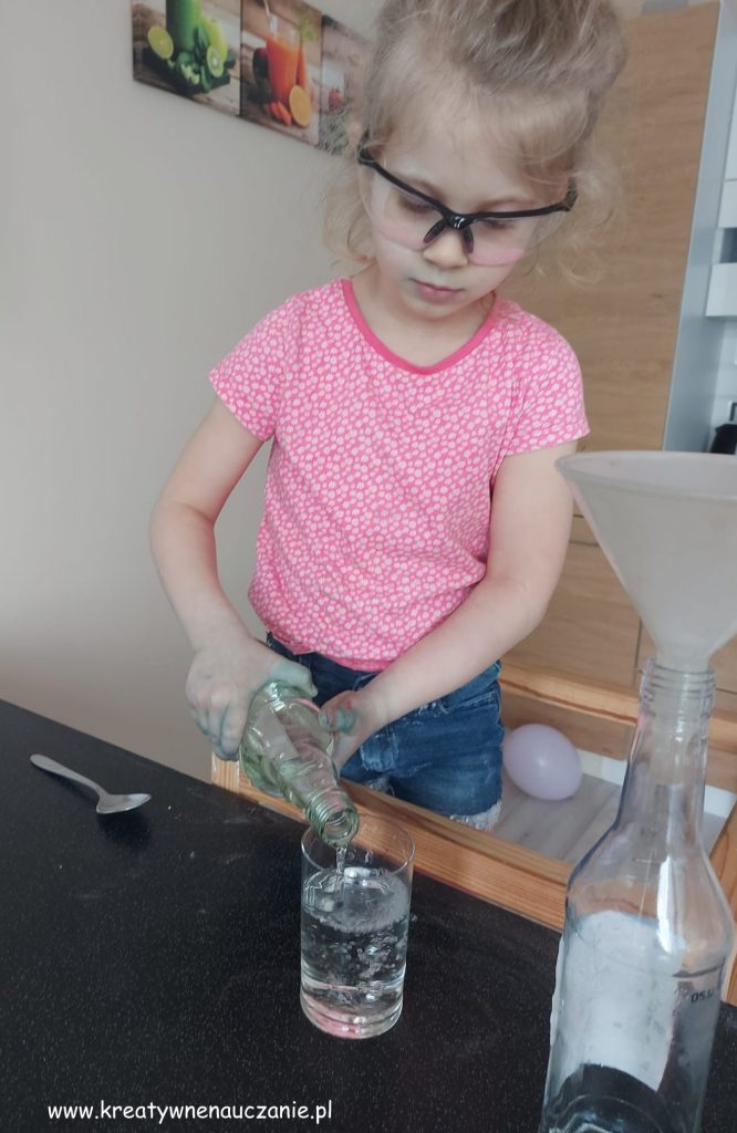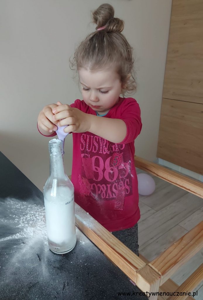 - Wsyp zawartość balonu do butelki i… chwilę poczekaj 😉