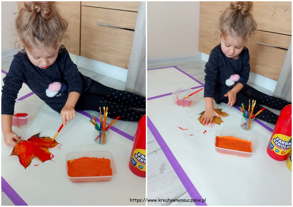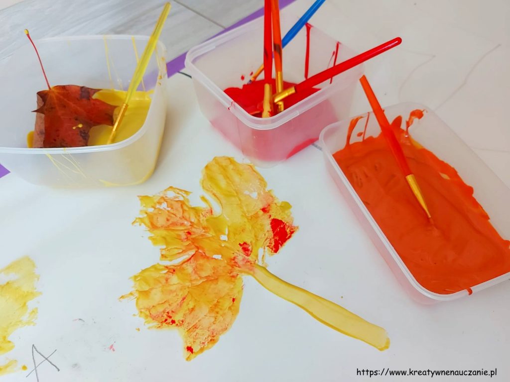 Jedna z najpopularniejszych zabaw jesiennych, czyli malowanie liści farbą i odbijania ich na kartce, sprawiła nam dzisiaj mnóstwo frajdy!