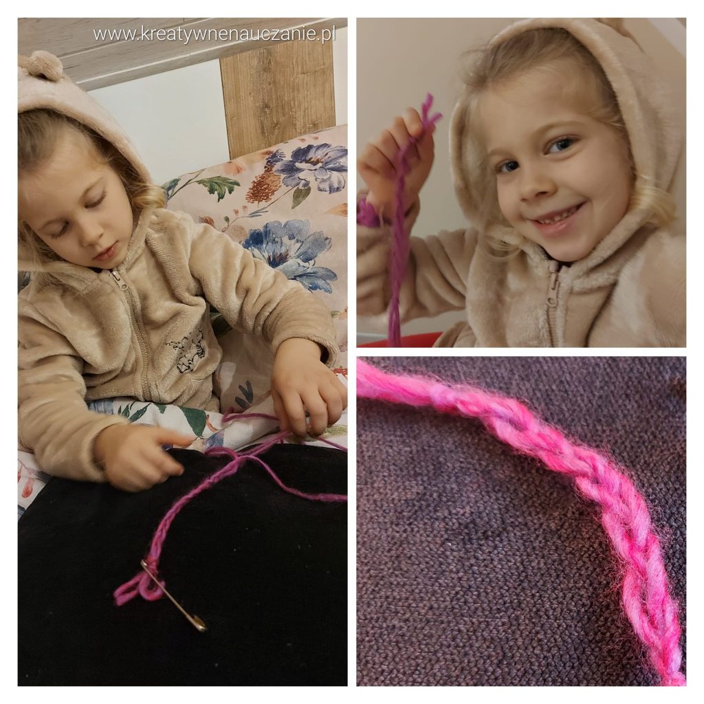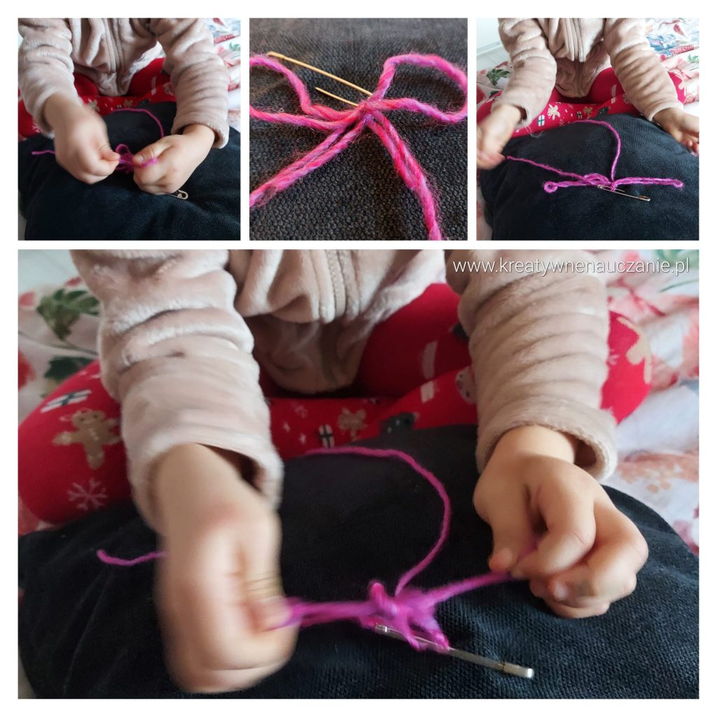 dziecko cieszy się zabawą, a przy okazji rozwija motorykę małą.