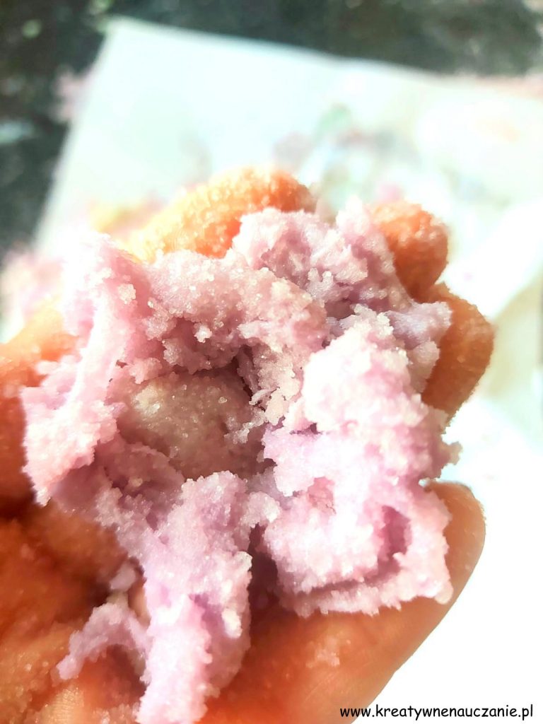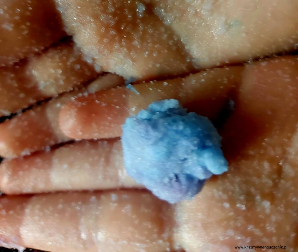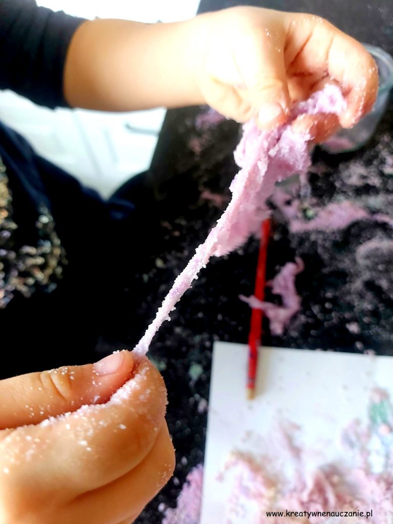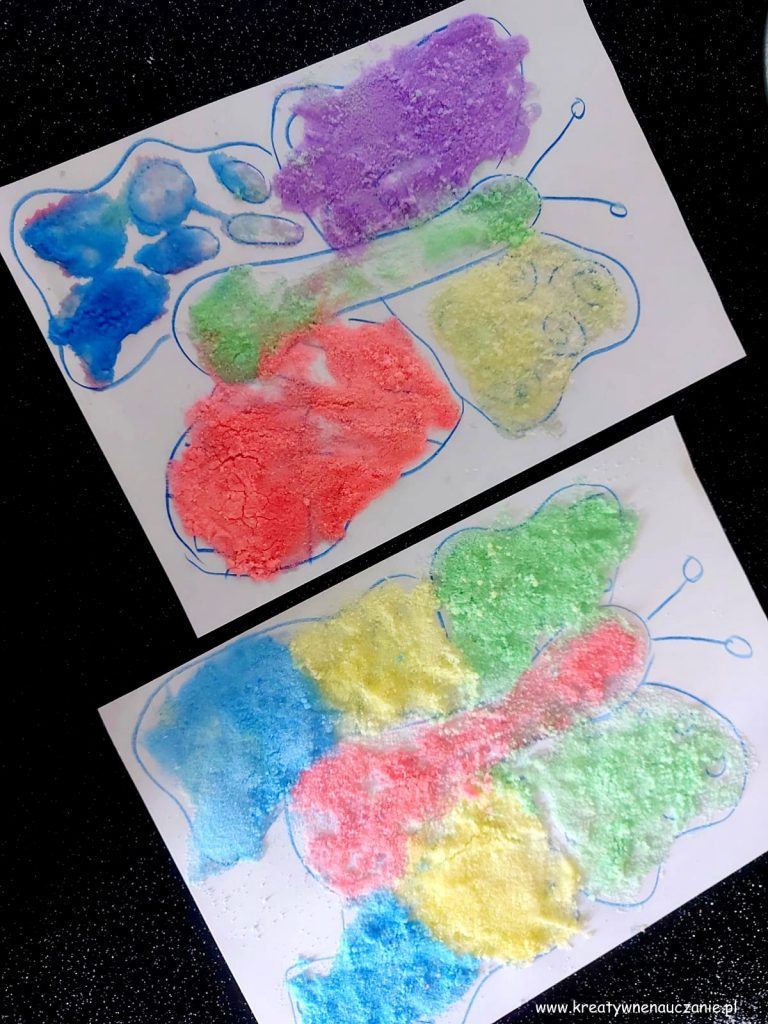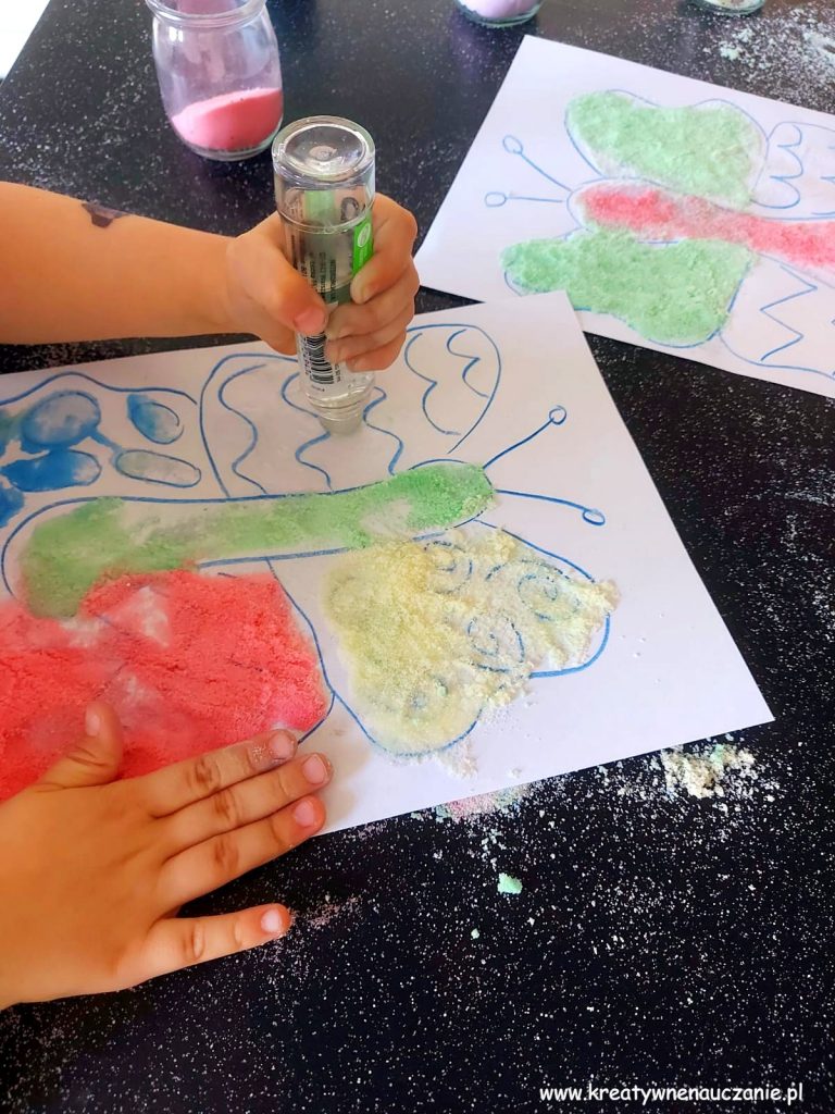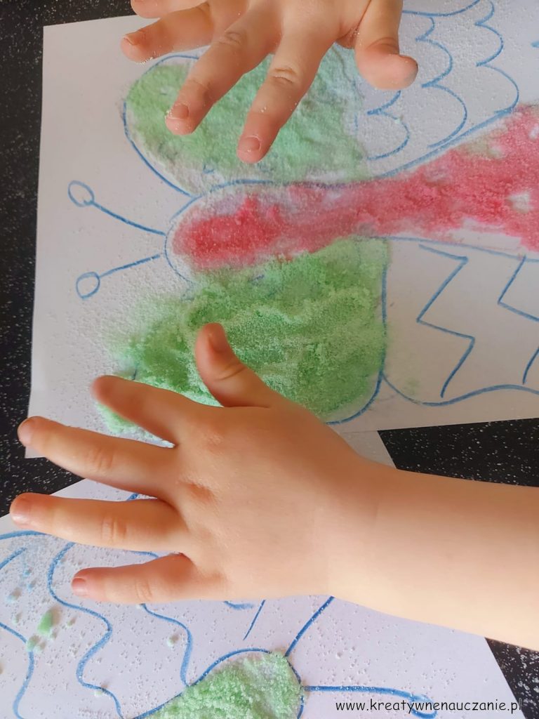 Zawsze kiedy proponuję tę zabawę moim podopiecznym, oni sami chcą barwić sól.