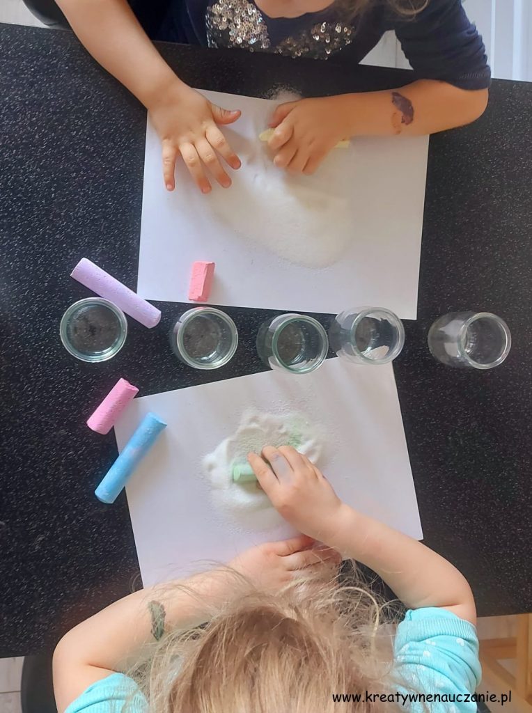 Sensoryczna zabawa z wykorzystaniem kredy i soli