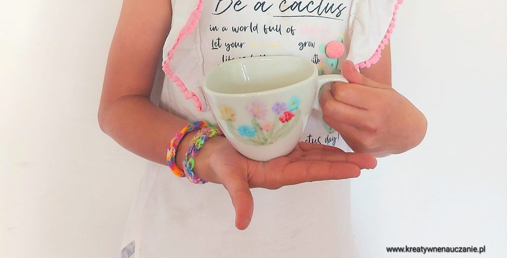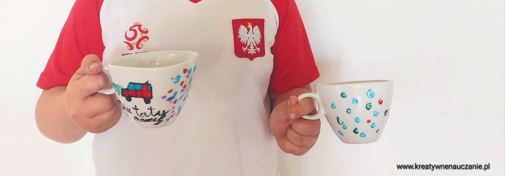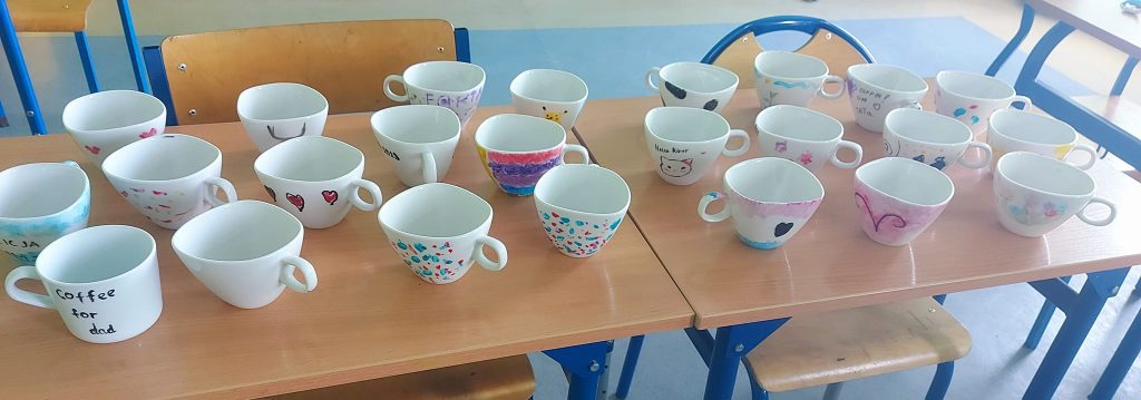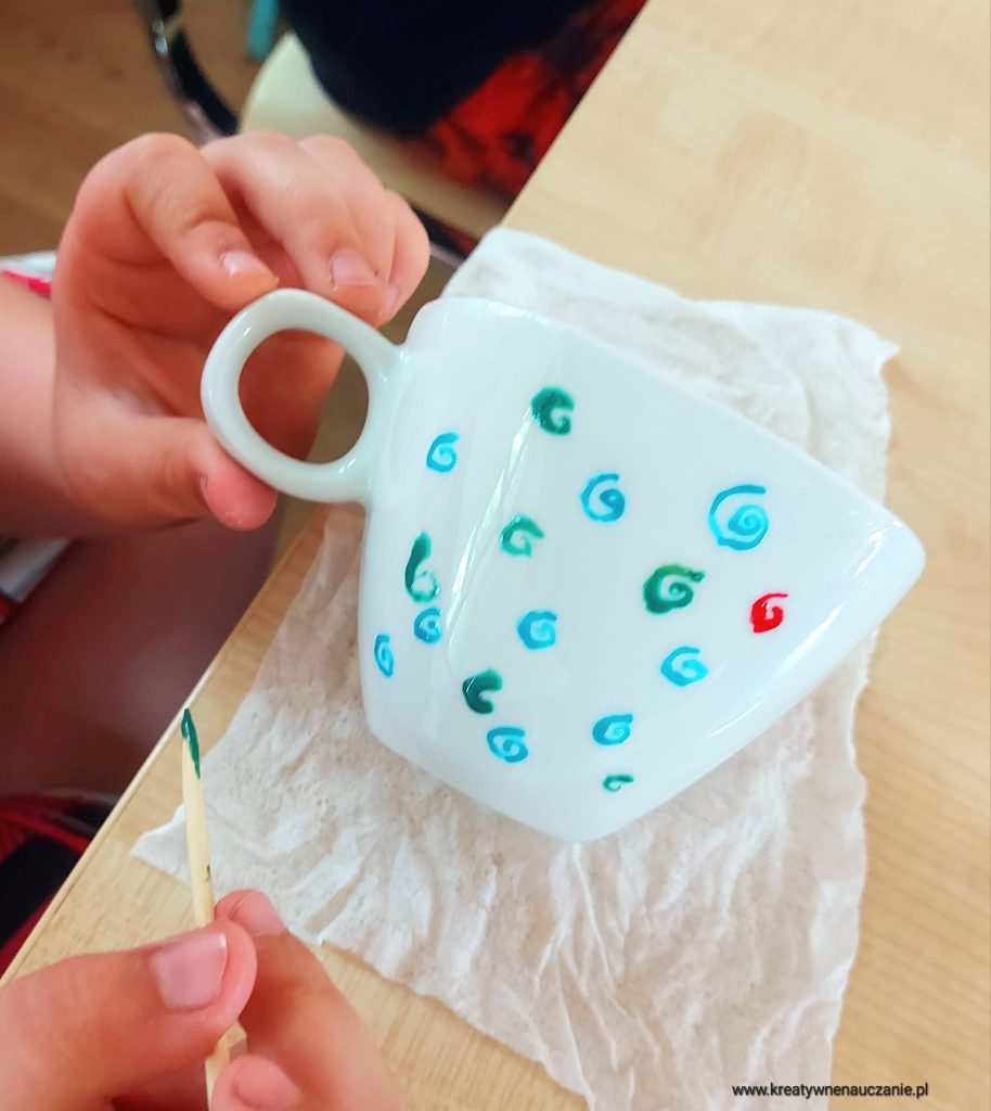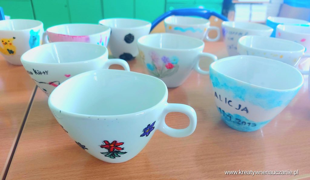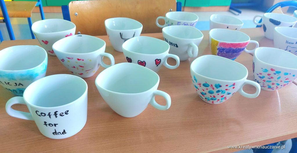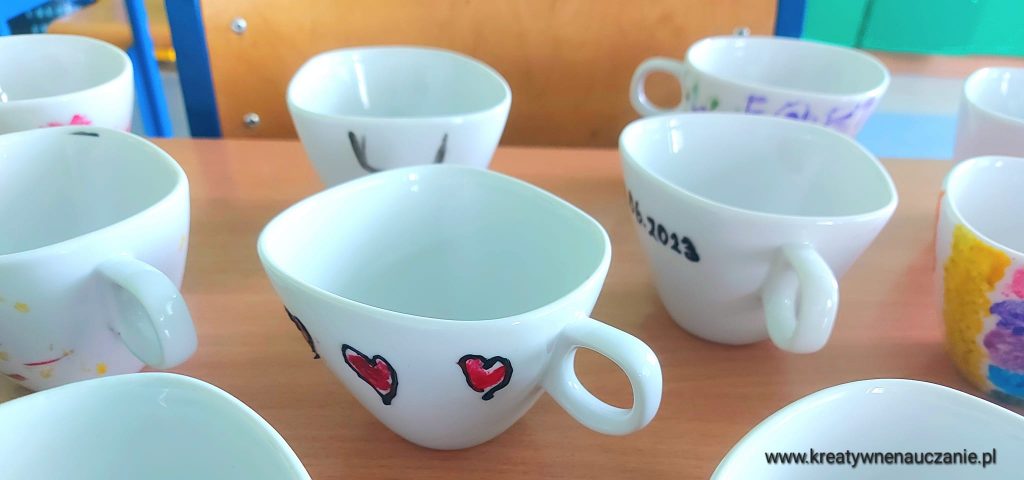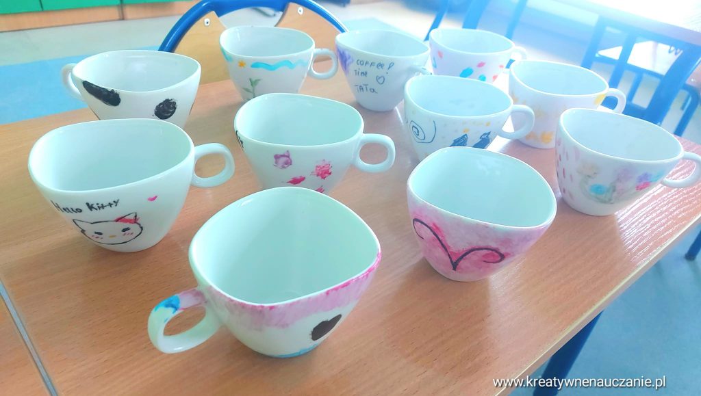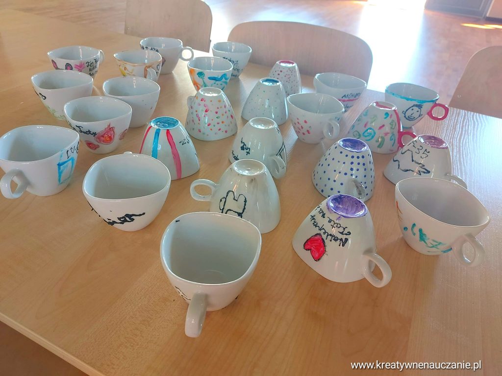 Każdy ozdobił dwie filiżanki. Dzieci robiły je z myślą o rodzicach i rodzeństwie ![]()