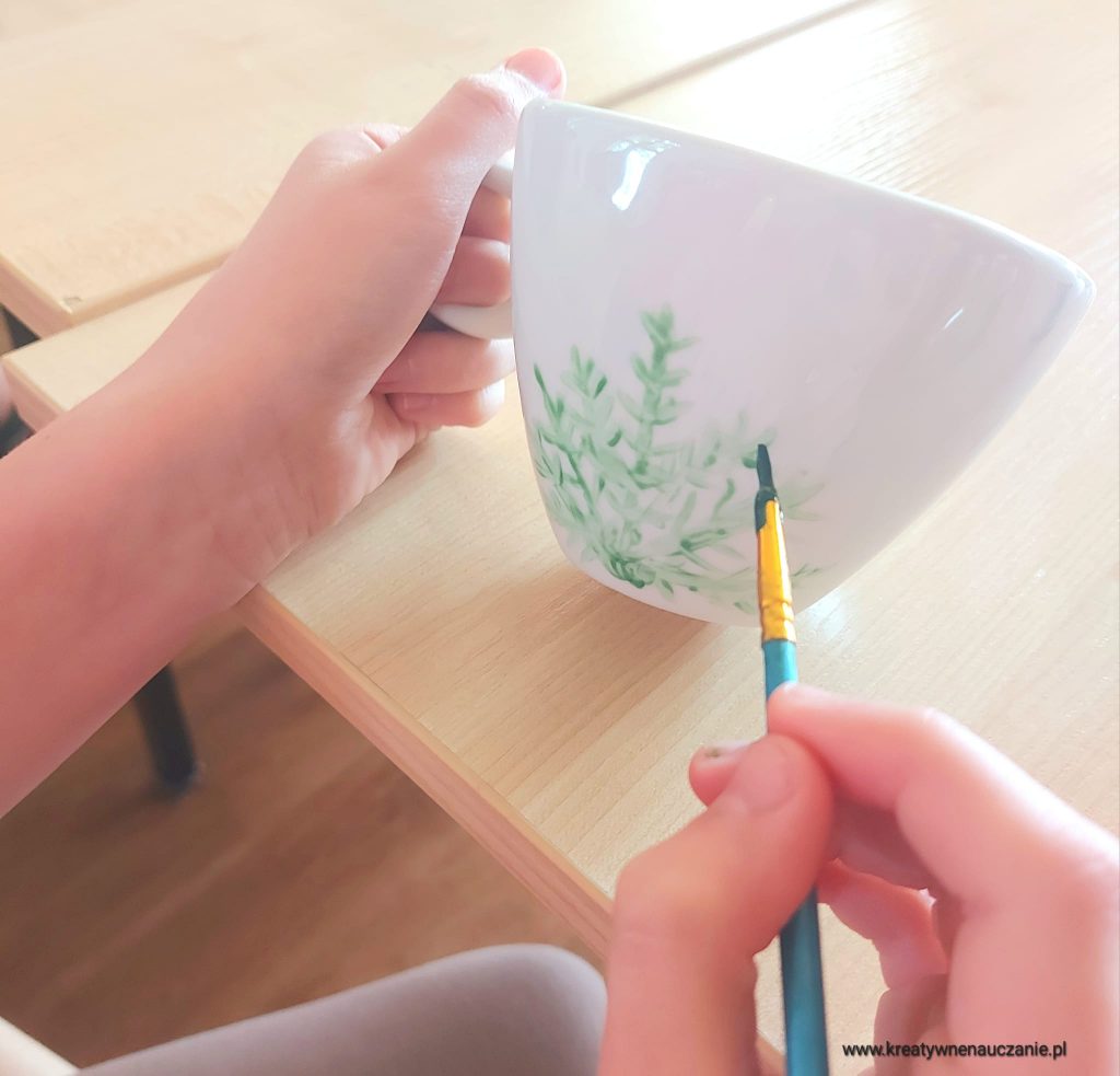 Trzecioklasiści zaczęli od odpowiedniego przygotowania filiżanek (odtłuszczenia). Następnie przygotowali farby, które połączyli z rozcieńczaczem. Malowali cienkimi pędzelkami i wykałaczkami. Napisy tworzyli specjalną konturówka.