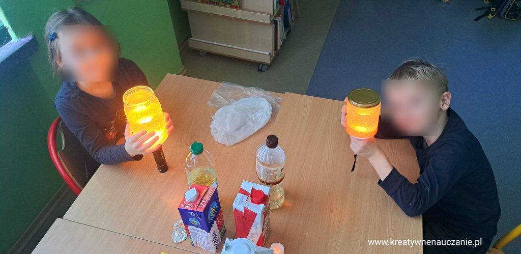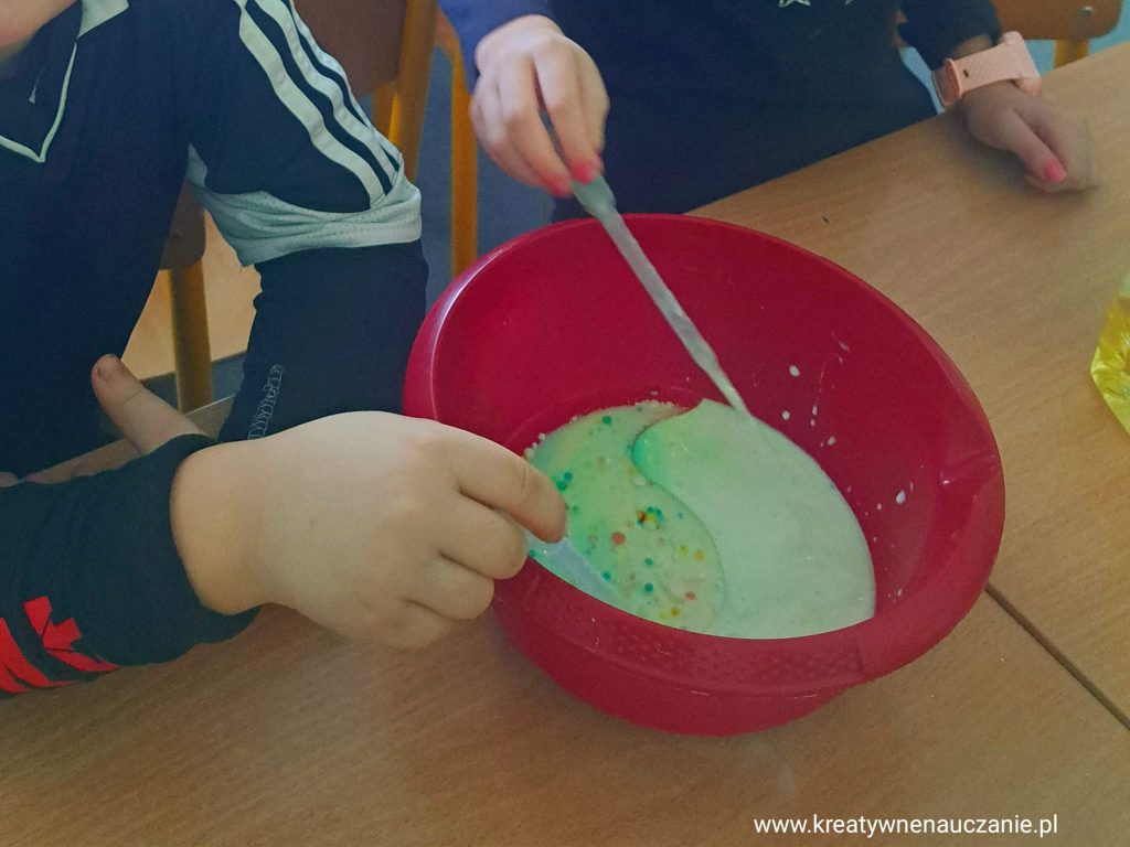 i eksperymenty. Wykonaliśmy lampę lawową, malowaliśmy na mleku.