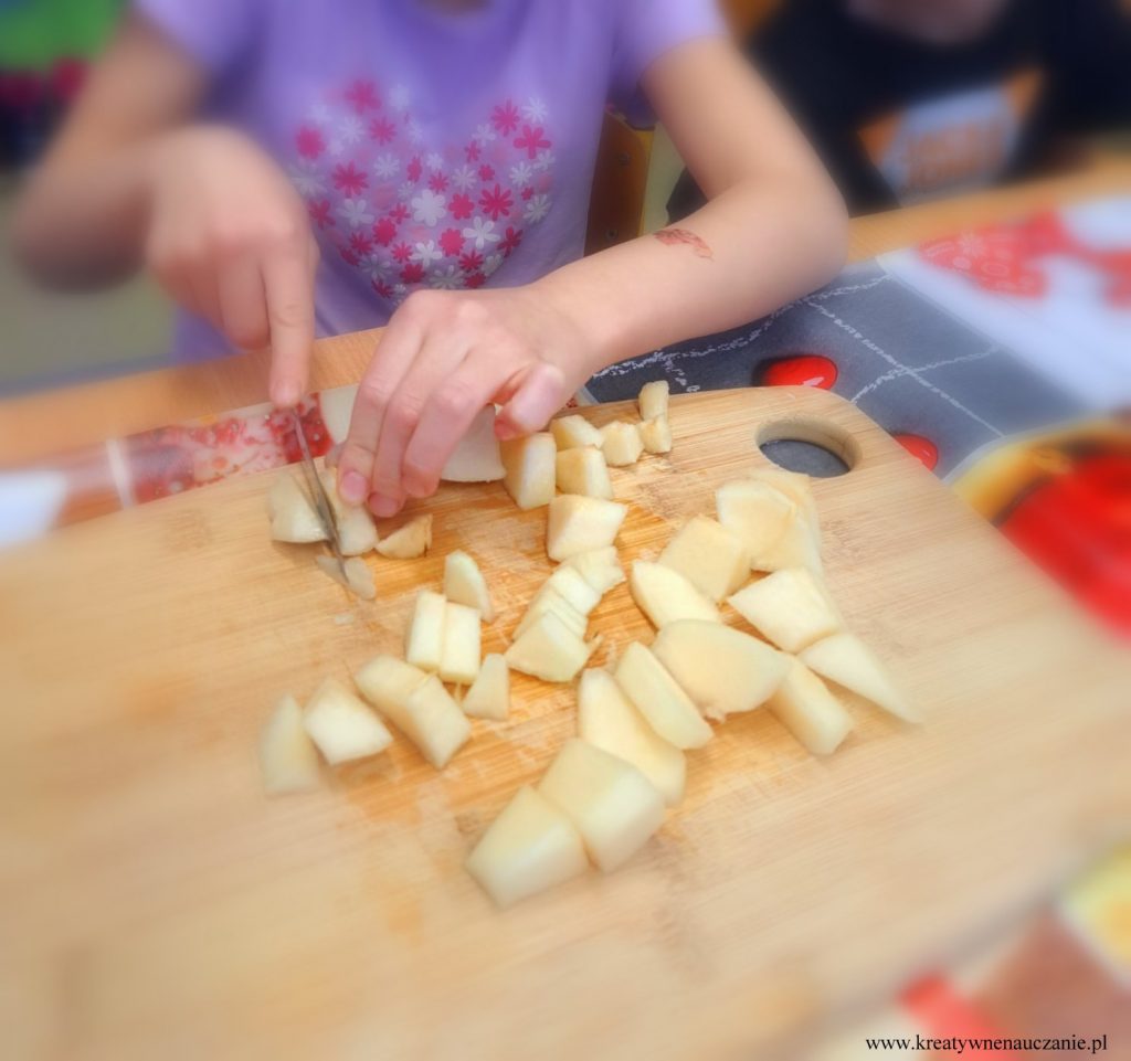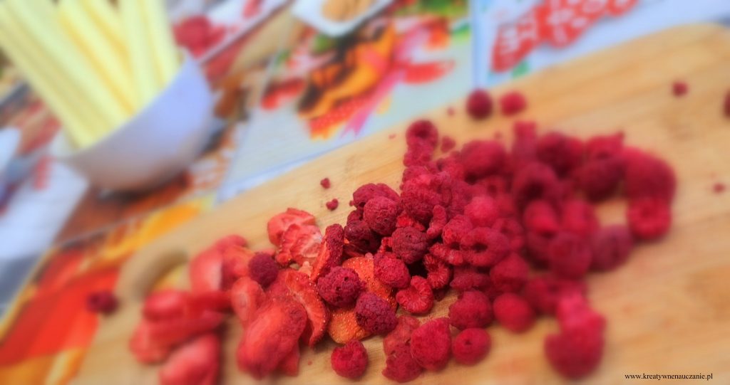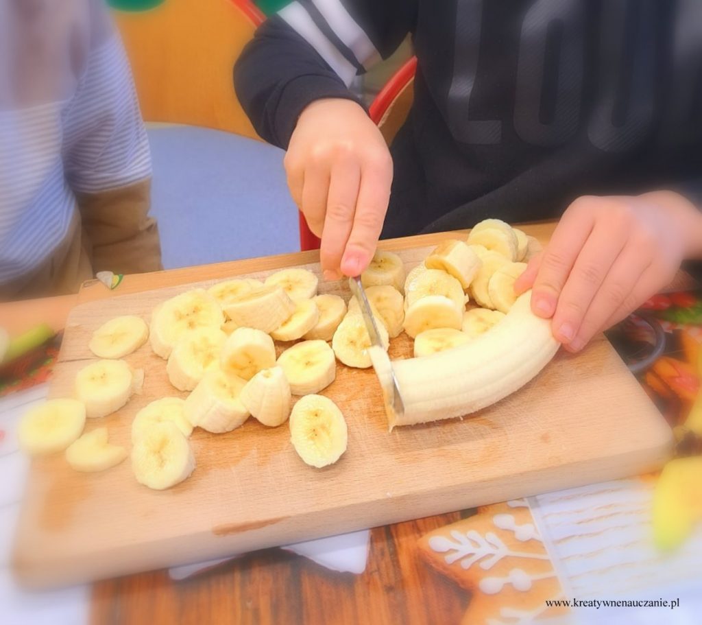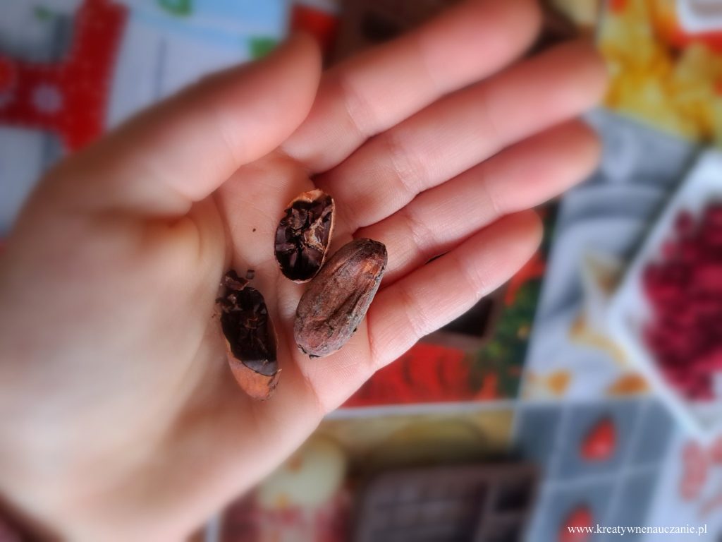 W ubiegłą środę miałam przyjemność poprowadzić warsztaty czekoladowe dla moich pierwszoklasistów. Dzieci dowiedziały się jak powstaje czekolada. Miały możliwość powąchania i spróbowania ziaren kakaowca. Samodzielnie kroili gruszki i jabłka, obierali pomarańcze, z których wykonali koreczki. Degustowali też suszone truskawki i maliny. Komponowali tabliczki czekolady według własnego pomysłu. Na koniec wspólnie tańczyli do piosenki “Czekolada”. Działo się!